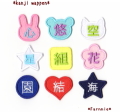 | 大きさ | ハート: よこ 3.8cm たて 約3.4cm 星: よこ 約3.9cm たて 約3.5cm くま: よこ 約4cm たて 約3.2cm まる: よこ 約3.4cm たて 約3.4cm うさぎ: よこ 約3.1cm たて 約3.7cm 花: よこ 約3.6cm たて 約3.6cm ねこ: よこ 約3.6cm たて 約3.2cm 四角: よこ 約3.2cm たて 約3.2cm |