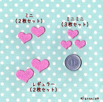 • ハートの刺繍アイロンワッペン【ミニミニ/ミニ/レギュラー】